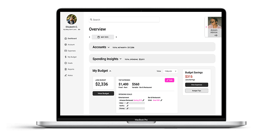 Viewing all accounts and expenses in one place - quickly viewing the user’s total net worth and expenses